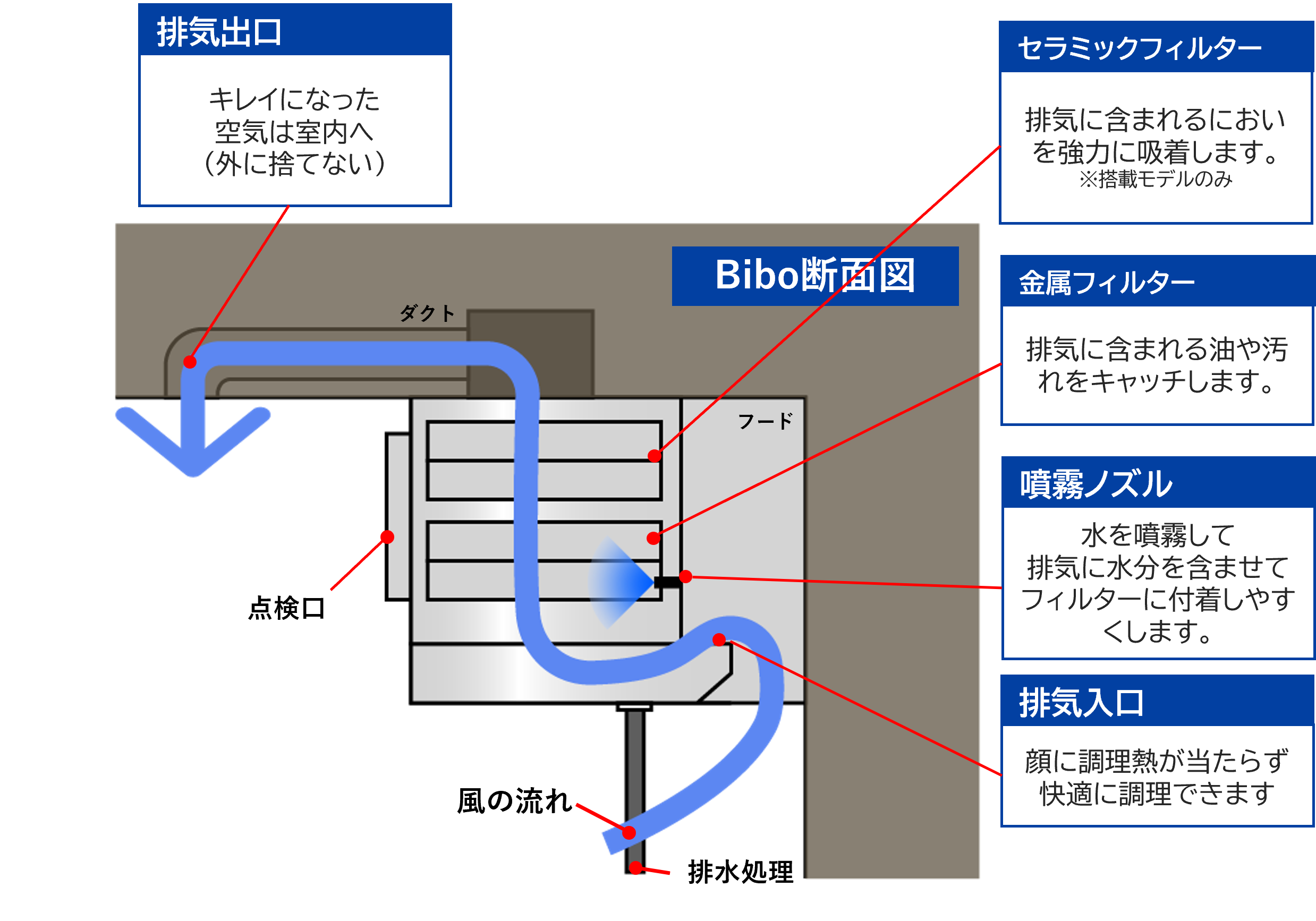 Biboは『電気式調理機器専用』の排気処理装置とご認識ください。