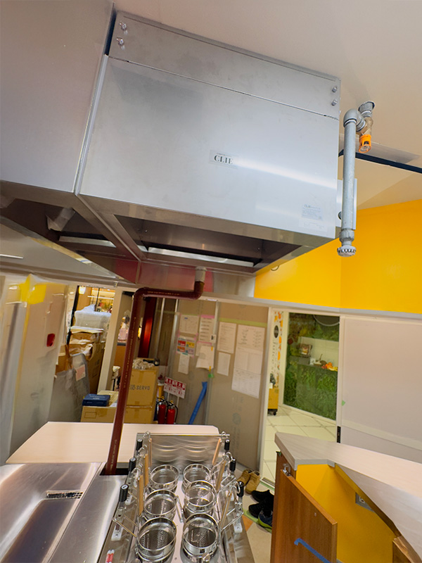 納入実績レポート飲食店 【導入事例】愛知県|排気に制限があるときには・・・ 2025年9月に、愛知県名古屋市にございます飲食店様へ『リターンフード』の設置をさせていただきました。 設置後 ※画像をクリックすると拡大します グリル上設置 食洗器上設置 ゆで麺器上設置 詳細情報 年月2025年9月施工所在地愛知県名古屋市製品名リターンフード