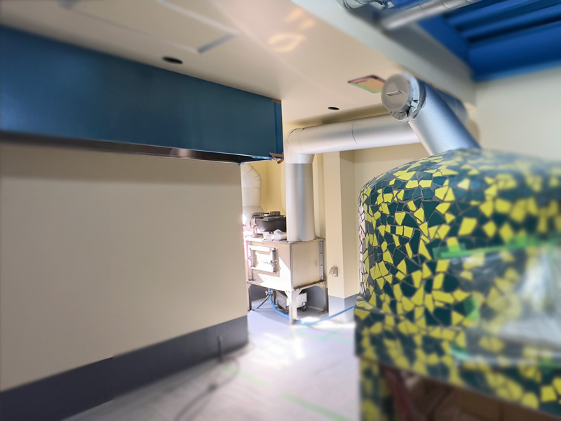 2026年1月に、大阪府寝屋川市にございます新規ピッツェリア様へ『ススとり君(床置仕様)』の移設工事をさせていただきました。