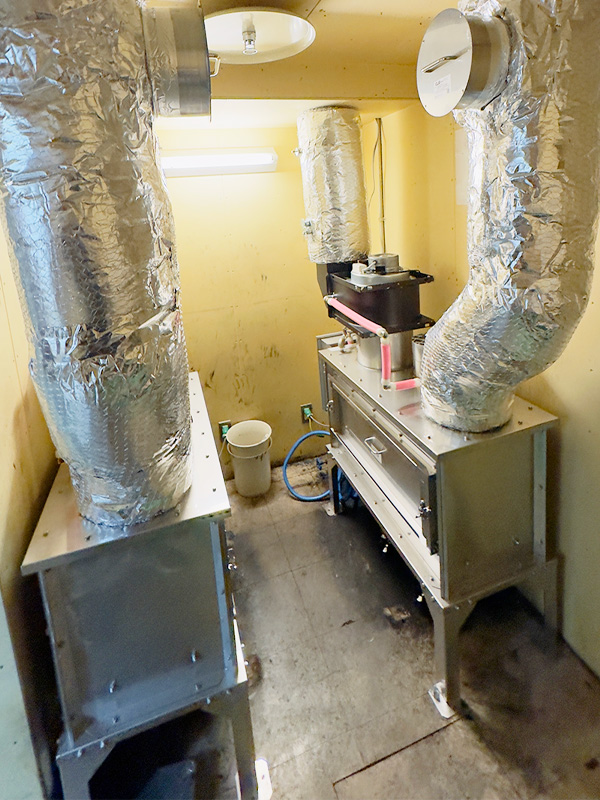 ピザ窯などの排気に含まれるススや煤塵を、水と金属フィルターのチカラで除去、洗浄を行う装置です。
