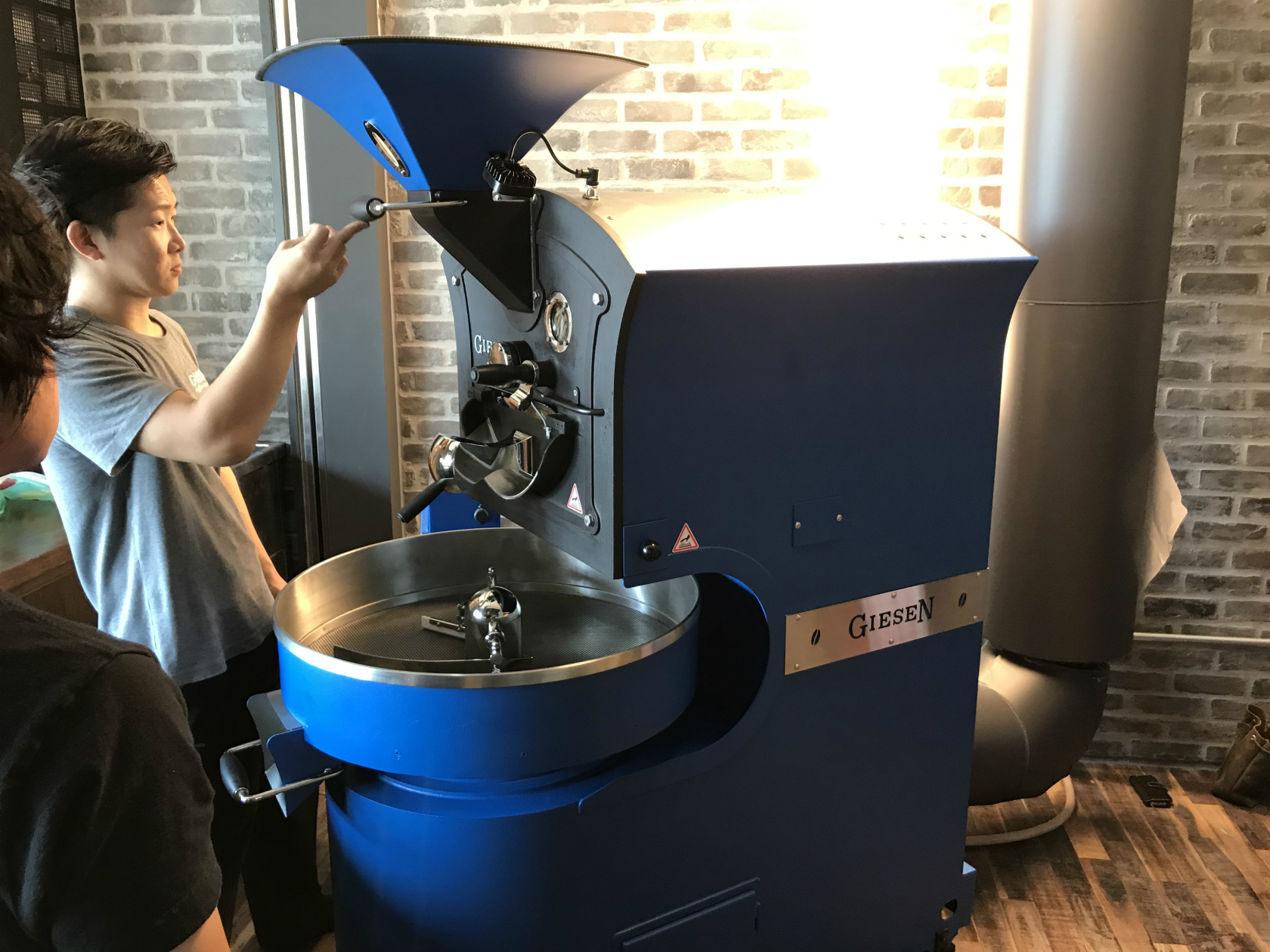 コーヒー焙煎時に発生するにおいを除去する装置です。送風機による二次給気で煙も希釈し薄くなります。